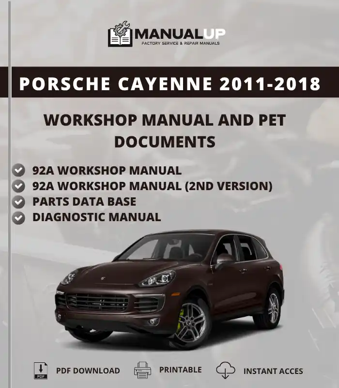 Porsche Cayenne 2011-2018 (92A) Service Repair Manual in PDF format, written in English, provides detailed factory-level maintenance and repair procedures. This digital product is available for instant download immediately after purchase, allowing quick and convenient access. Ideal for both professionals and DIY owners seeking a reliable workshop manual.